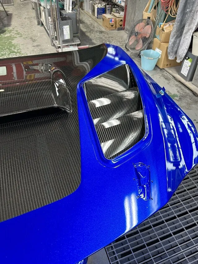 今回の依頼はニッサン GT-R33のN1仕様のドライカーボンウィングです。クリヤー層がかなり劣化してしまっています。無理もありません、30年近く前の部品です。自分がレースメカニック時代に製品から型を起こしてプリプレグで作ったことを思い出しました。懐かしいですね。今回の依頼はノーマル状態の限りない復元という難問でした。お客様との相談により、お客様のお車に対する熱い情熱を感じとり、どうにかできないかと試行錯誤しています。エアロメーカー、純正部品の製造している業者様などからの情報招集中です。